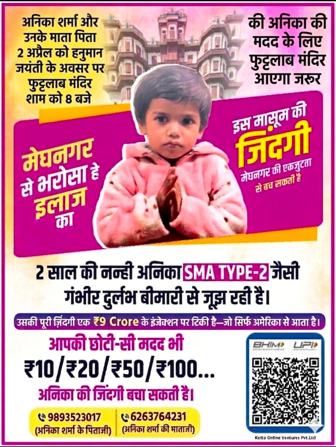 अनिका शर्मा इस समय एक दुर्लभ और गंभीर बीमारी SMA टाइप-2 से जूझ रही है।